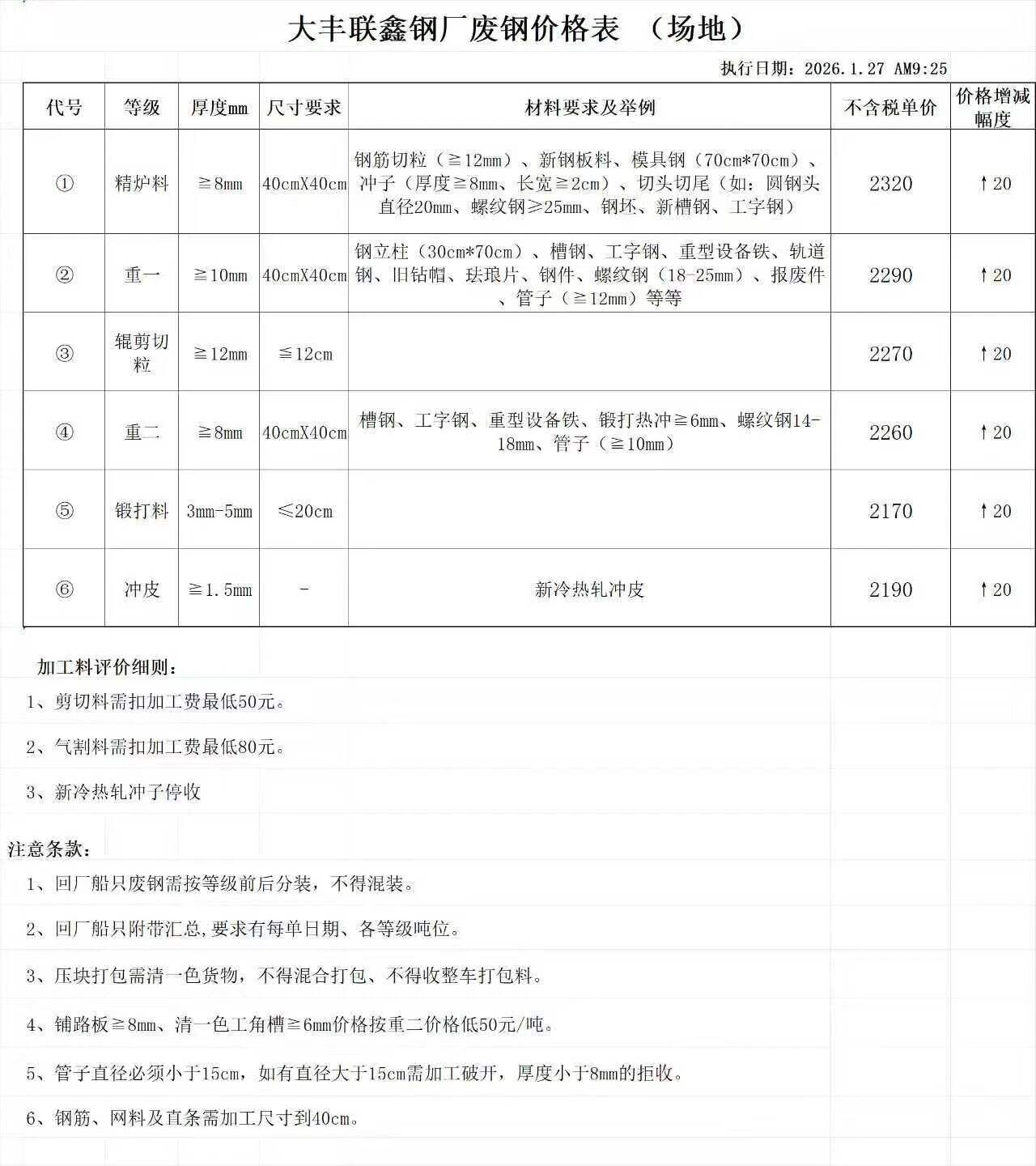 ****年*月**日大豐聯(lián)鑫鋼廠廢鋼價格表(場地)報價