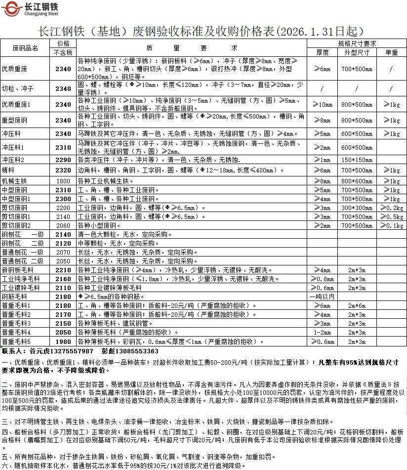 華東分公司自****年*月*日起上調(diào)廢鋼采購價格**元/噸,重廢基價****含稅。