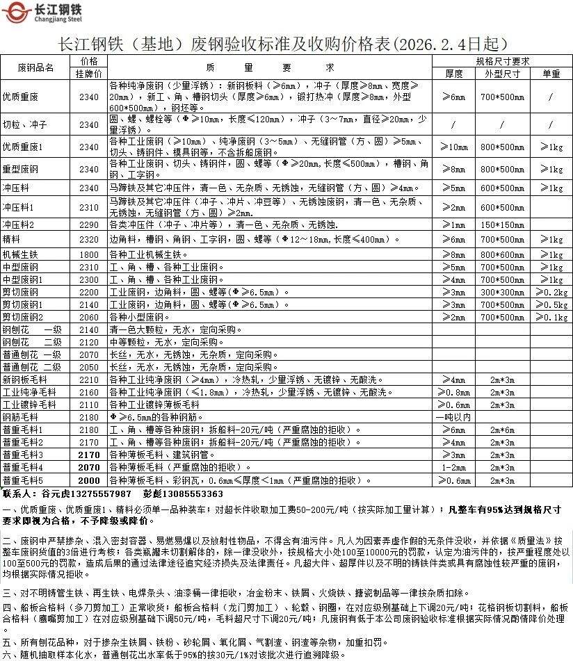 蕪湖富鑫*月**日到廠卸貨價格如下:中廢:****元。重廢:****元。鍛打料:****元。矽鋼片、瓜子片(尺寸**以內(nèi))****元。優(yōu)重:****元。鋼板料:****元。滾剪:****元。手工切粒:****元?!?月**日,鐵餅執(zhí)行價格****元。