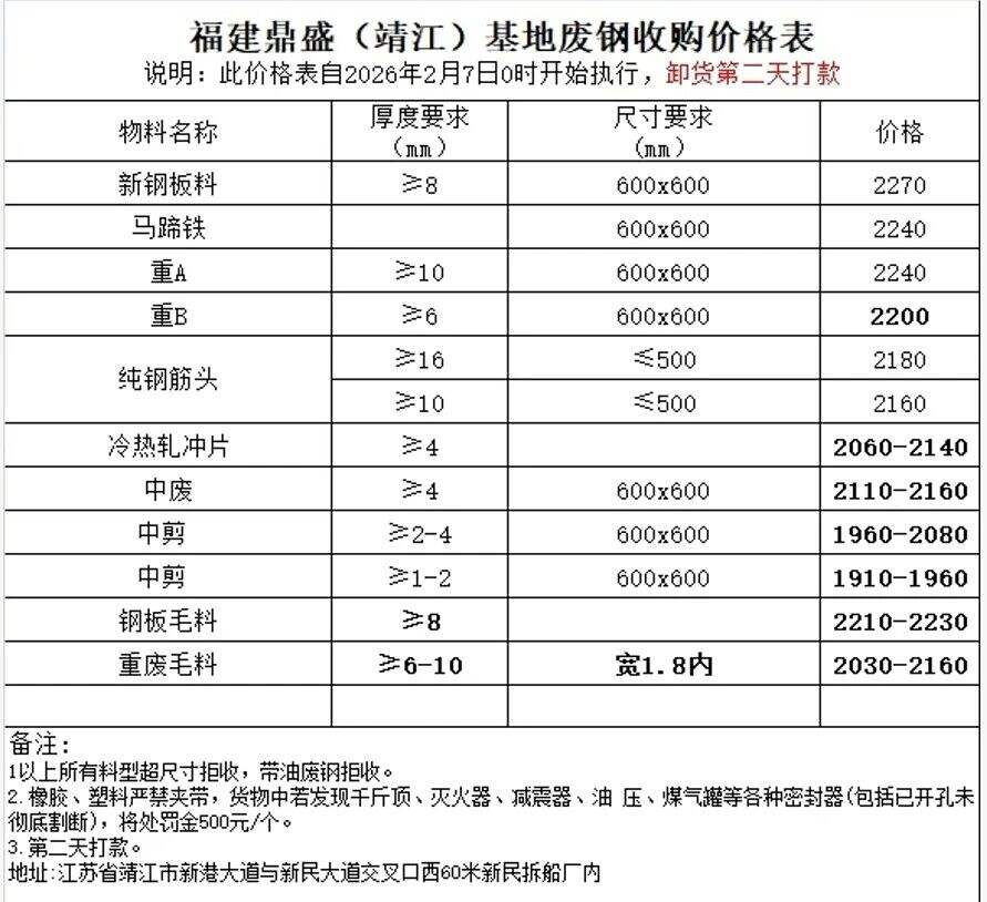 ****年*月*日福建鼎盛(靖江)基地廢鋼收購(gòu)價(jià)格表
