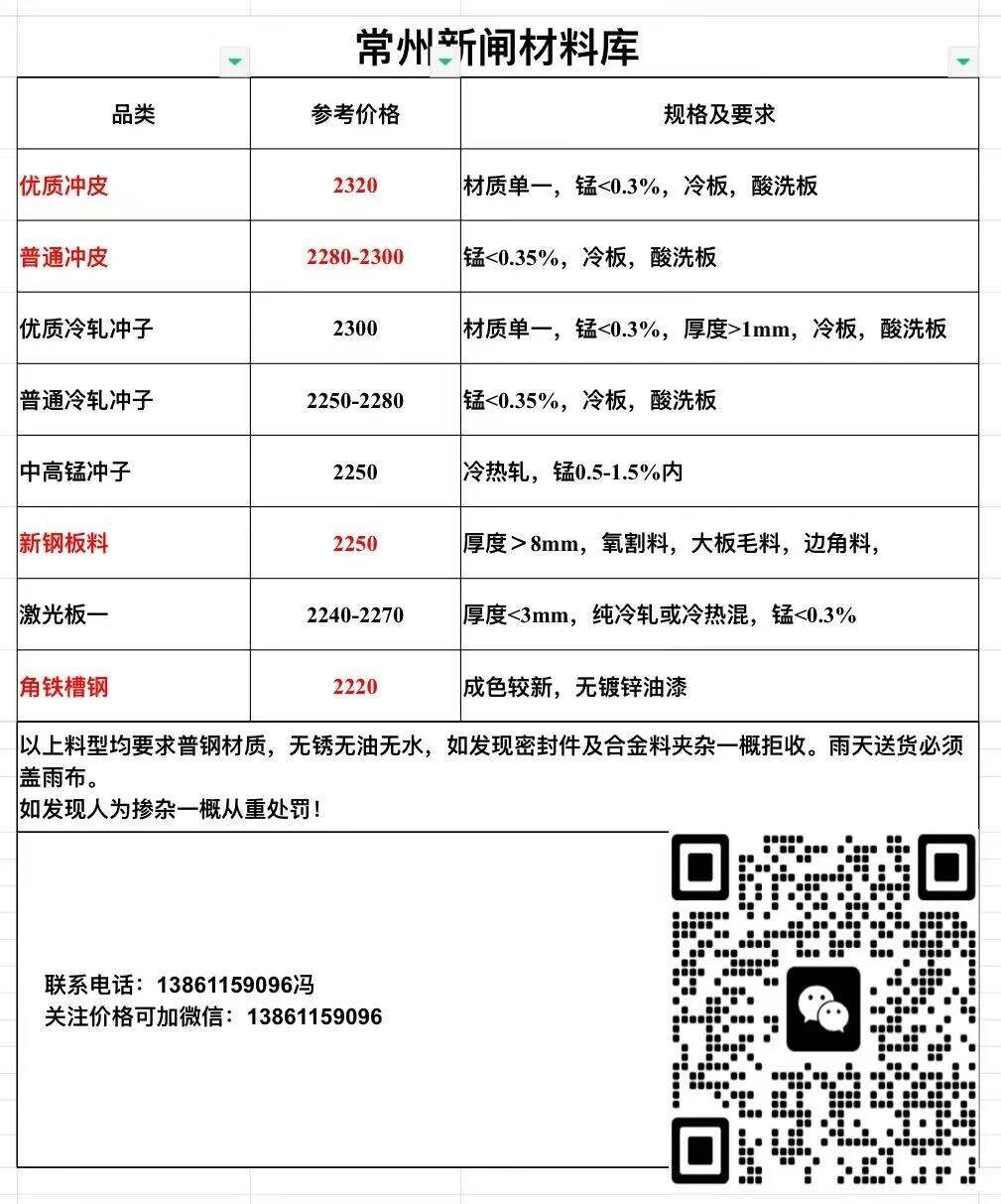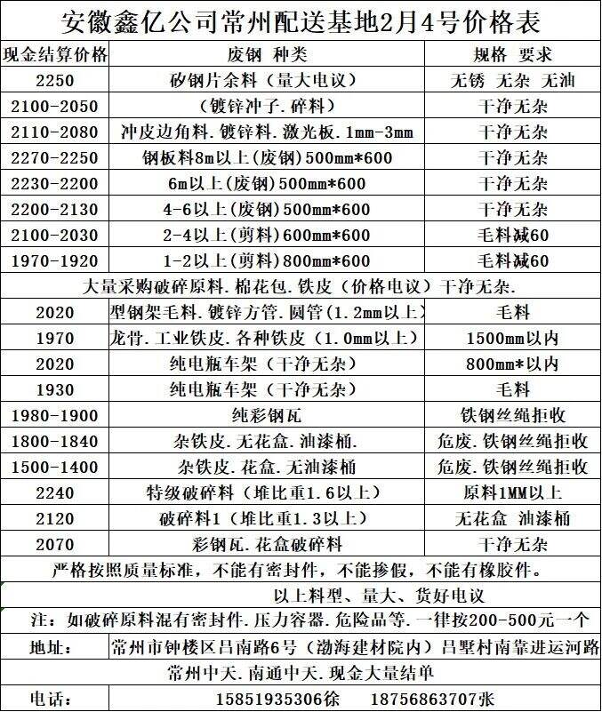 氣割料、大件生熟鐵看貨定價(jià)。密封容器.含油廢鋼拒收??蓭眱r(jià)格另議。
