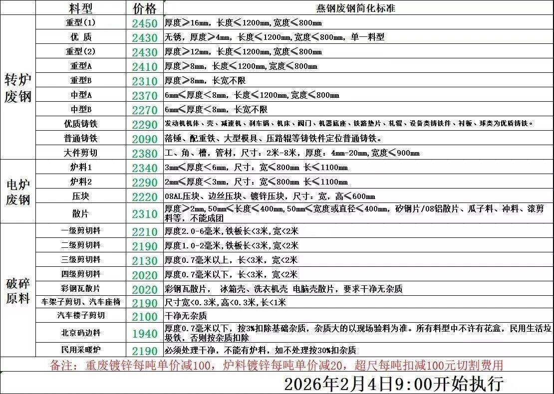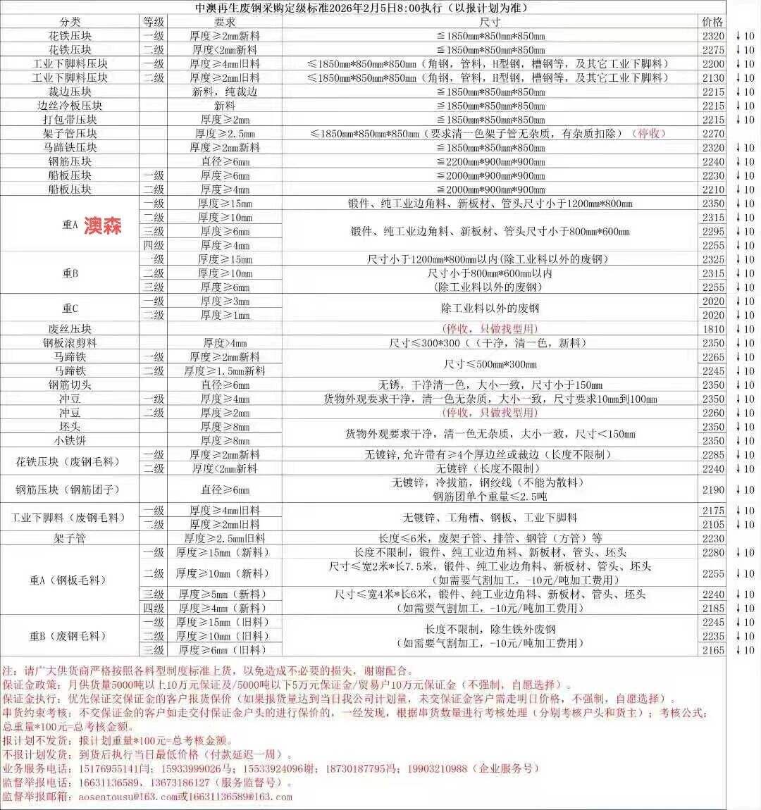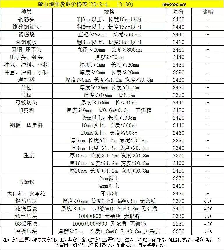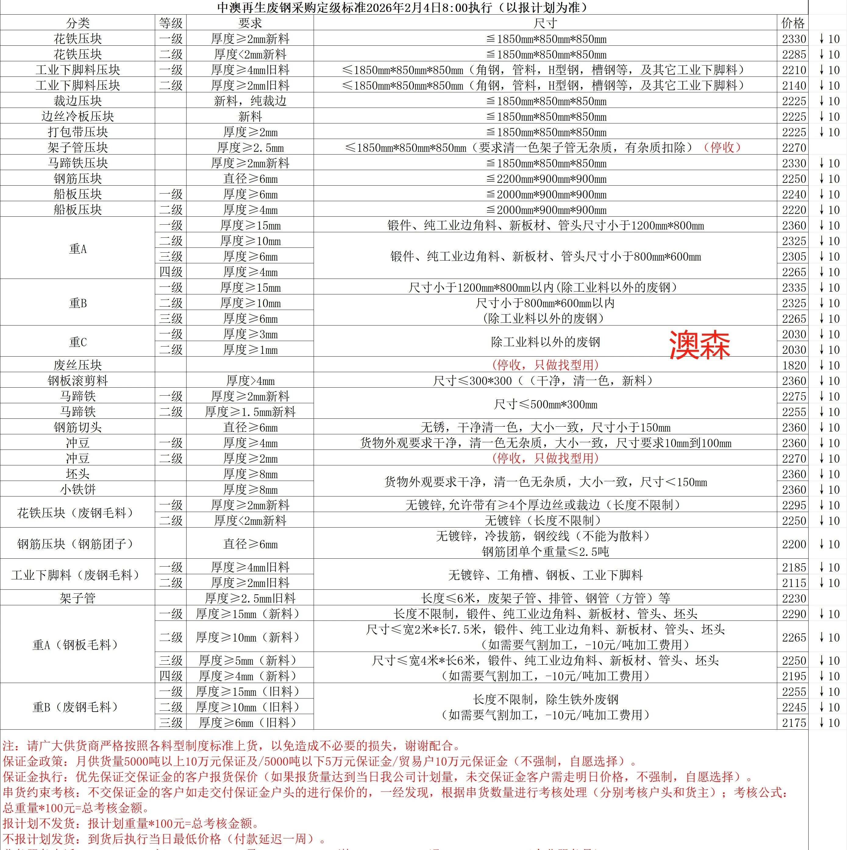 鑫達(dá)榮信廢鋼于*月*日晚*點(diǎn)進(jìn)行價(jià)格調(diào)整,廢鋼價(jià)格下調(diào)**-**