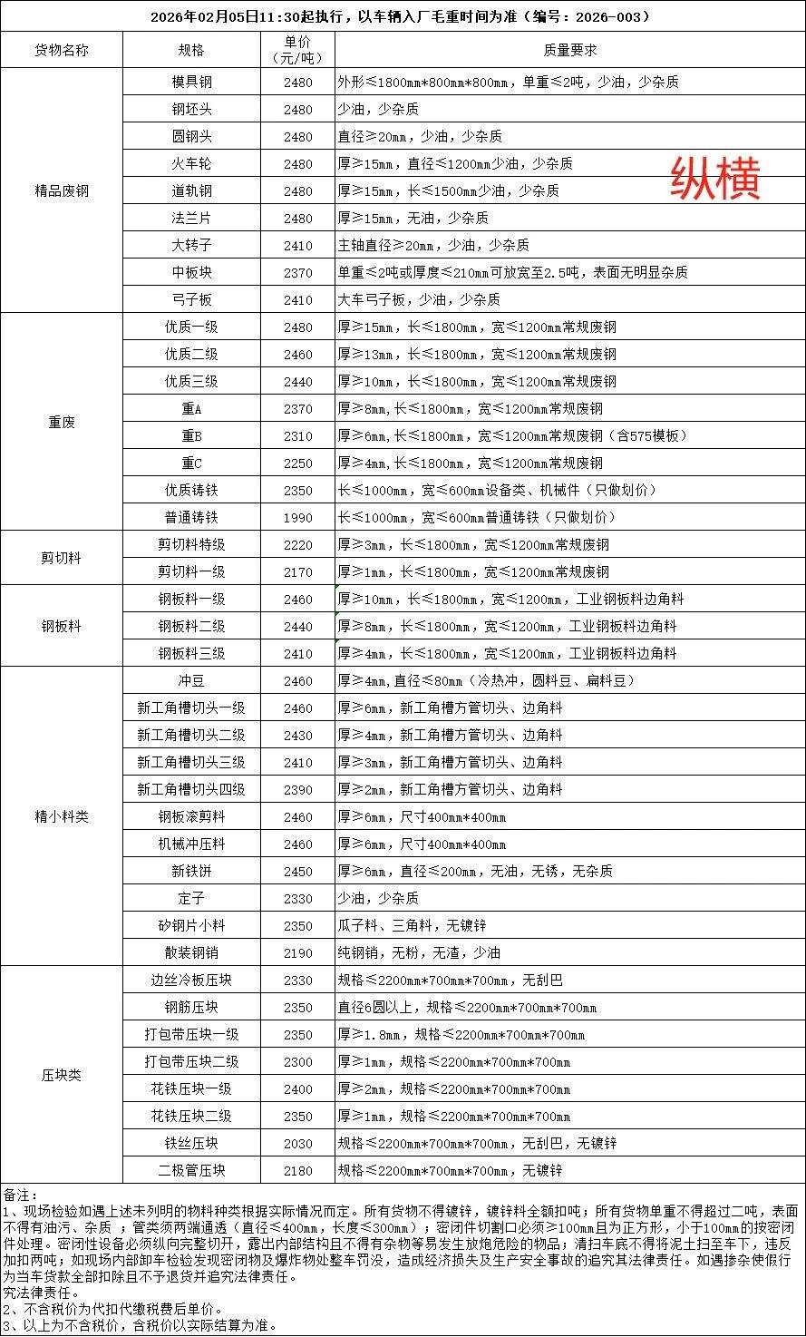滿價(jià)****,**厚以上新板料(*.*-*.*m)****、沖豆≥*mm以上、道軌、鋼筋切粒****,鋼筋頭****,**mm以上重廢****,*-*小沖豆(無油無銹無氧化鐵)****滾剪鋼筋頭****手撕鋼筋頭****,大車弓子板****,厚馬蹄鐵*-*mm****