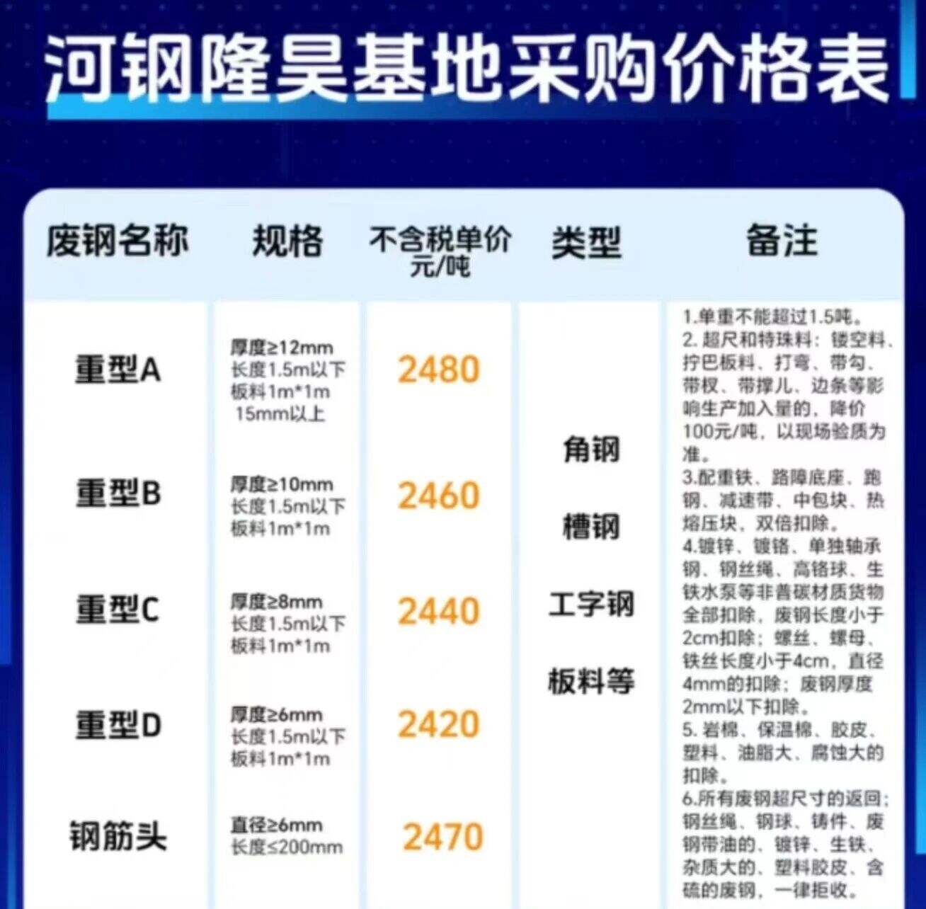 ****年*月**日河鋼隆昊基地采購價格表