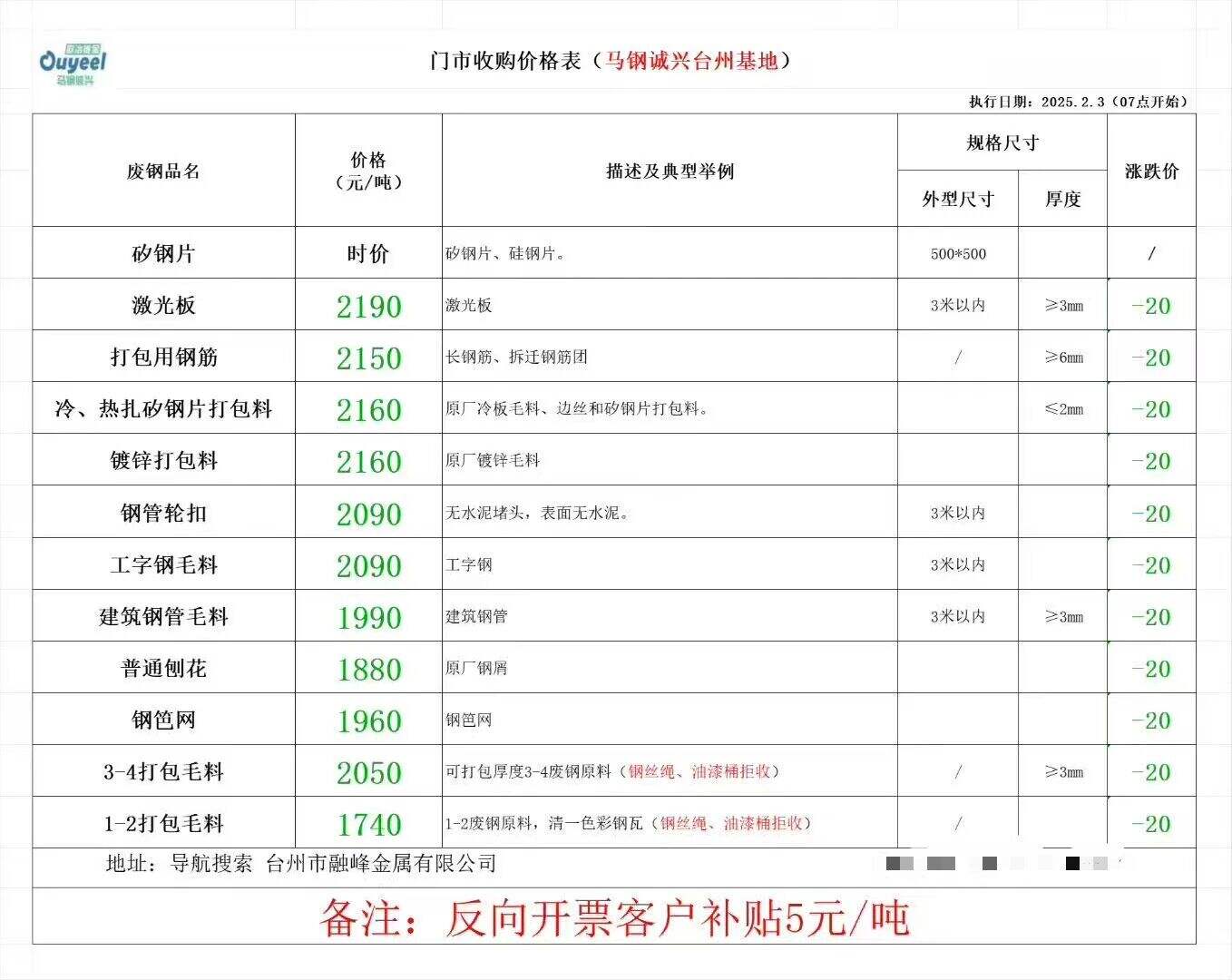 ****年*月*日蕭紹楊汛橋廢鋼碼頭報價